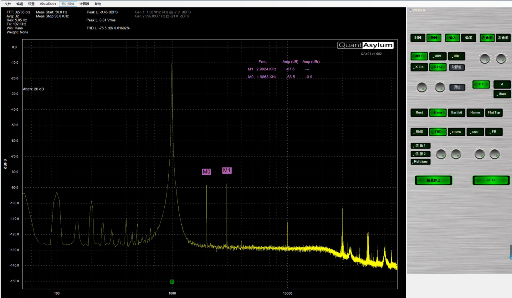 需要说明的是:总谐波失真(THD)只是放大器的一个“静态指标”,因为测量时只输入了单一频率的纯正弦波信号,这个条件与实际的音乐工作情形是不相同的,所以,THD参数并不能准确地反映出功率放大器的音质好坏。